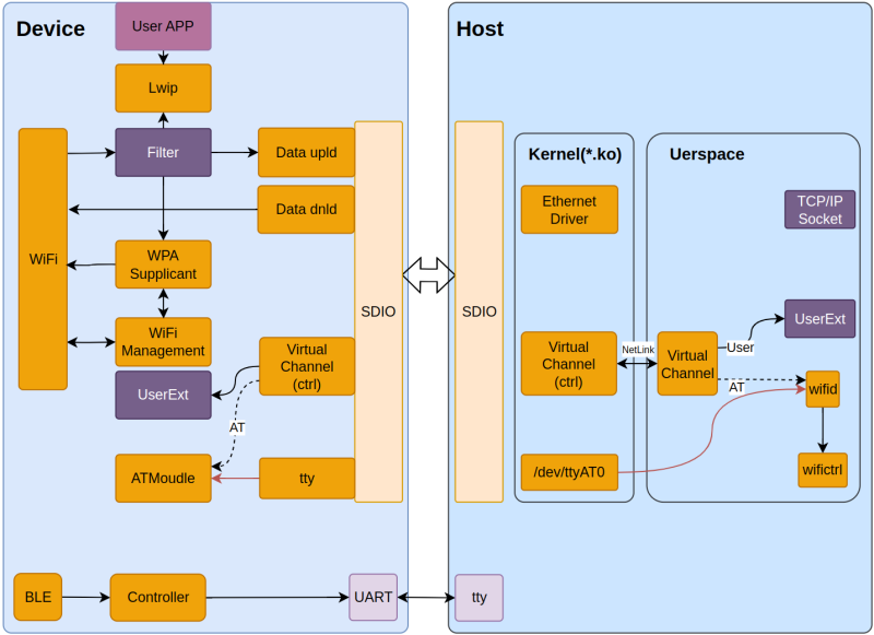 设备 → 内核驱动 → /dev/ttyAT → bflbwifid → 解析处理 → 网卡配置